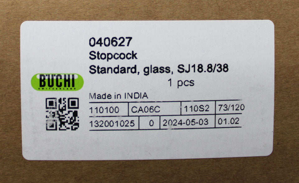 New Buchi 040627 Stopcock Standard, glass, SJ18.8/38 for Rotorvapor R200 and R205