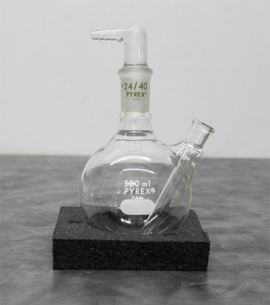Pyrex 500mL Round Bottom Distilling Flask with Bent Inlet Adapter
