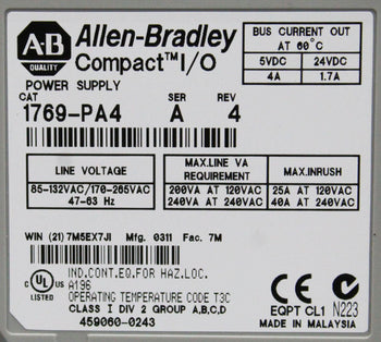- Allen-Bradley 1769-PA4 CompactLogix AC/DC Power Supply Module