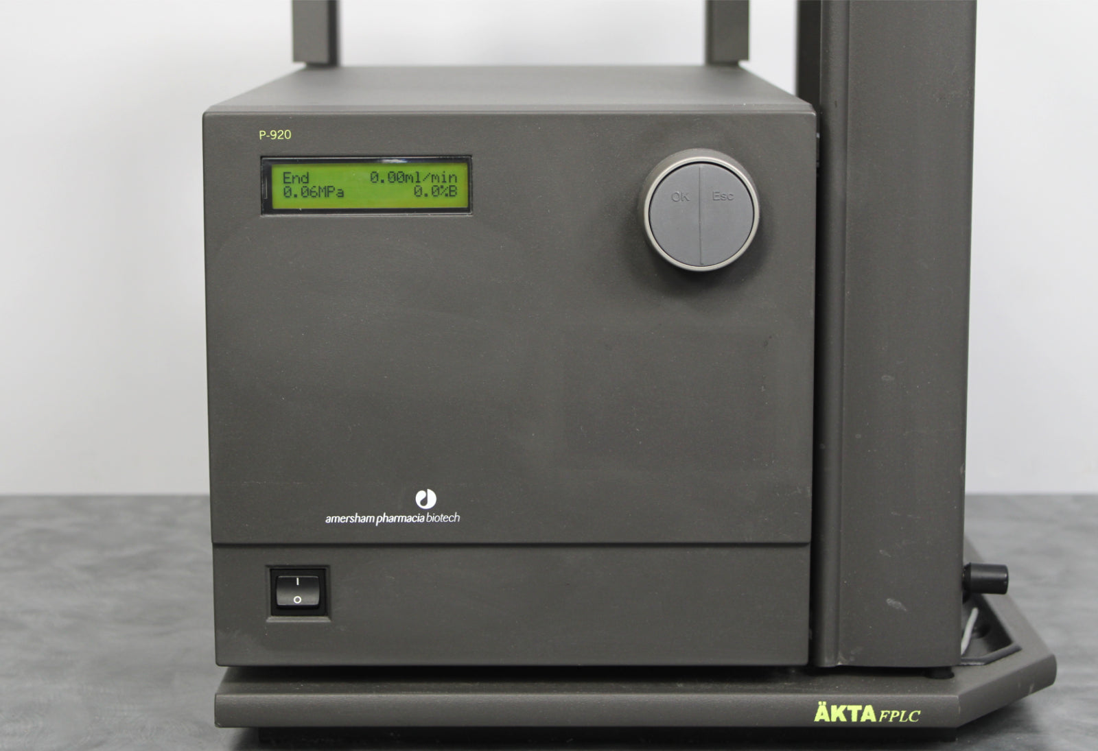After its initial disinfection and inspection, our technicians tested the Amersham Pharmacia Biotech AKTA FPLC base and P-920 pump with the following results: