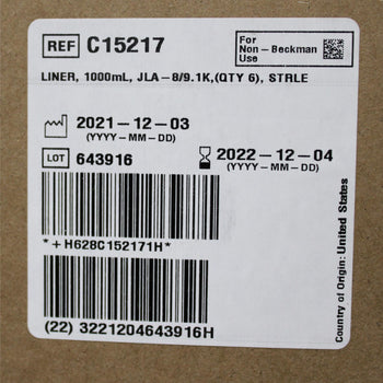 Beckman Coulter C15217 HarvestLine System Liners Sterile w/ Peel Pack 1 L 6PK