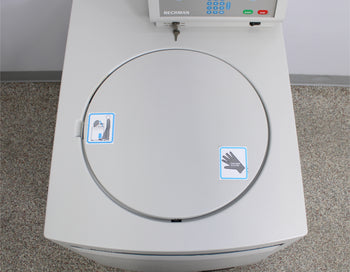 After its initial disinfection and inspection, our technicians tested the Beckman Coulter Avanti J-30I High-Speed Refrigerated Floor Centrifuge