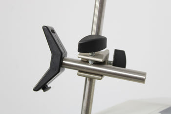 Notice! The glass support arm is missing a tab to connect one end of the band that secures the condenser (see photo). You’ll either need to replace the whole piece or create a tab by drilling a hole and inserting some material, such as a screw, to act as a tab.