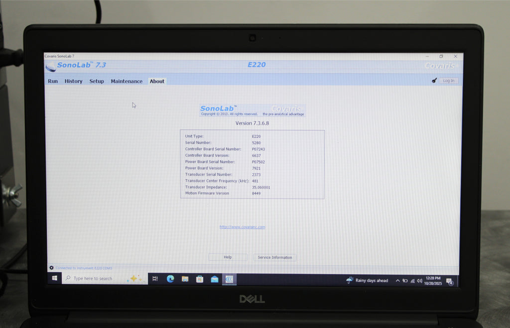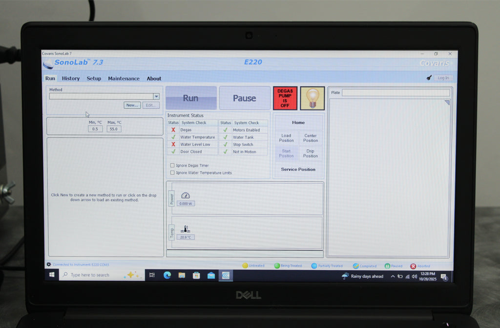 After its initial disinfection and inspection, our technicians tested the Covaris E220 focused-ultrasonicator with the following results: