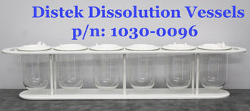 Distek 3010-0096 x6 Dissolution Vessels w/ Caps and Rack for Bathless Testing