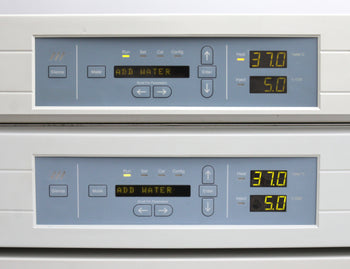 Notice: The bottom incubator is a 3130, but the O2 sensor has failed so we disabled the sensor, making this incubator the functional equivalent of a 3110 with a gas guard.