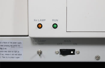 After powering on this Hitachi F-4500 Fluorescence Spectrophotometer the Run status light flashes green once. No additional testing was performed.