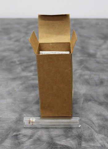 Specs: fill capacity, 15 mL; outer diameter, 18 mm; length, 102 mm; maximum relative centrifugal force (rcf), 13 100g; maximum temperature, 300 C. Borosilicate Glass.