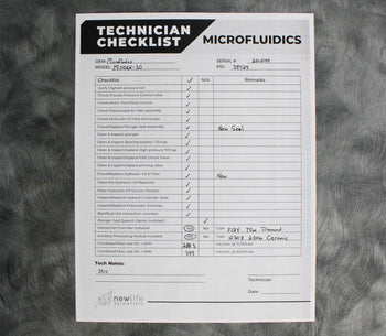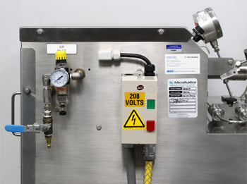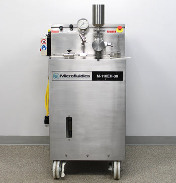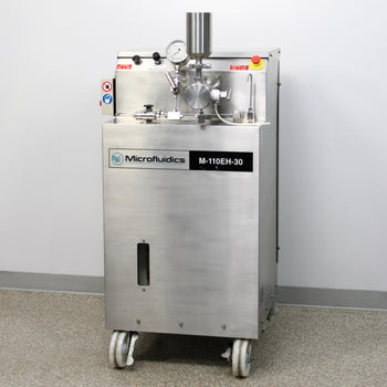 After its initial disinfection and inspection, our technicians tested the Microfluidics M110EH30K microfluidizer processor with the following results: