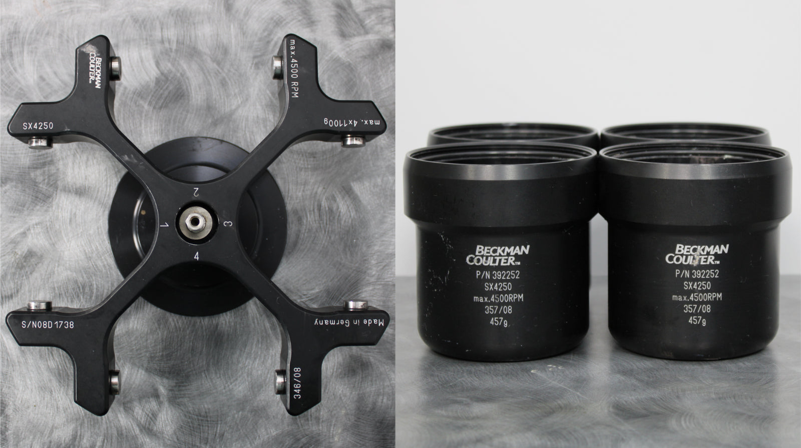 - Four (4) Beckman Coulter SX4250 rotor buckets (392252)