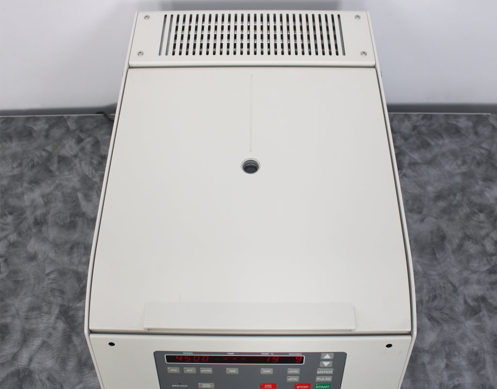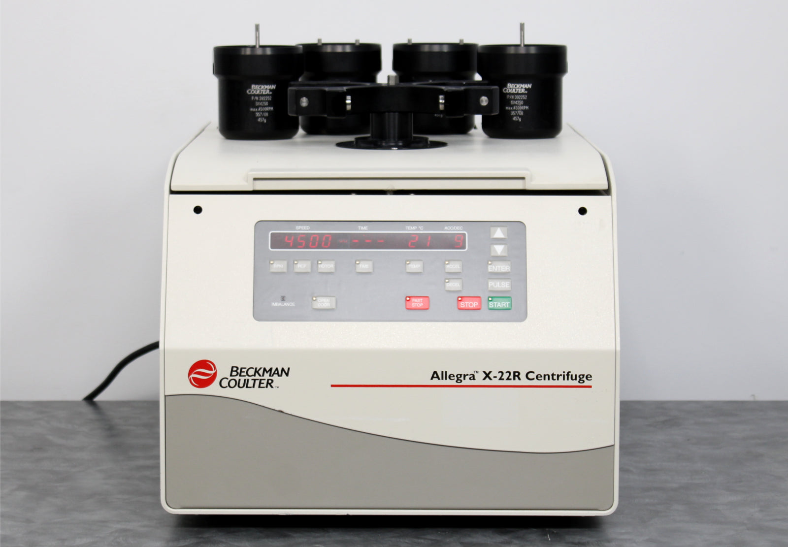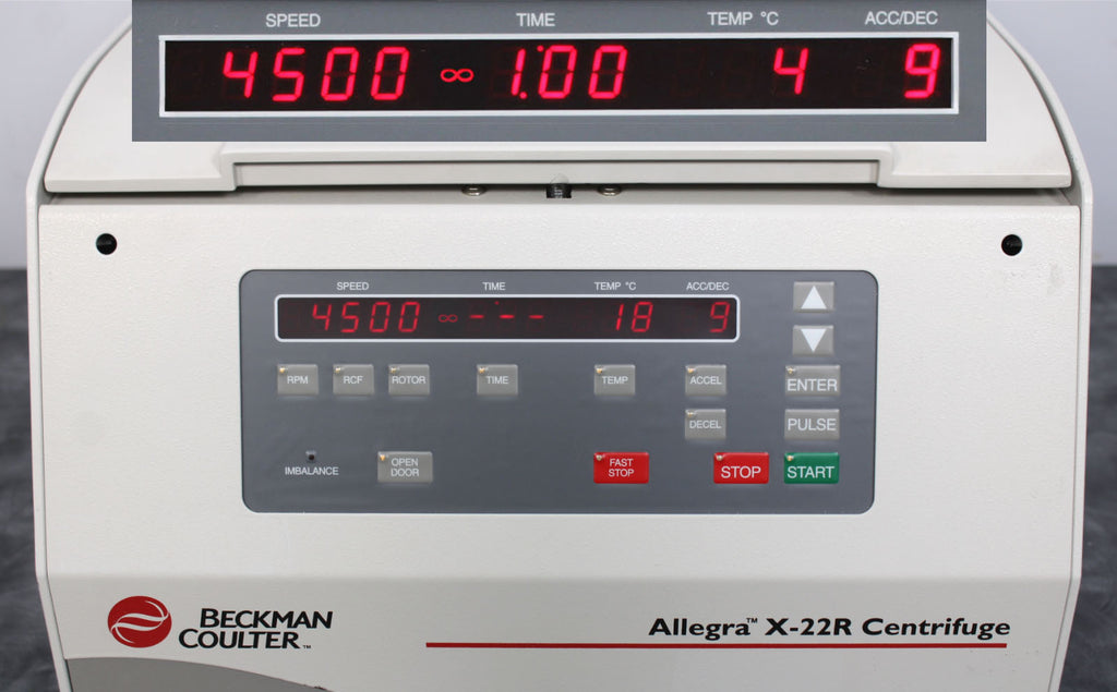 After its initial disinfection and inspection, our technicians tested the Beckman Coulter Allegra X-22R refrigerated benchtop centrifuge with the following results: