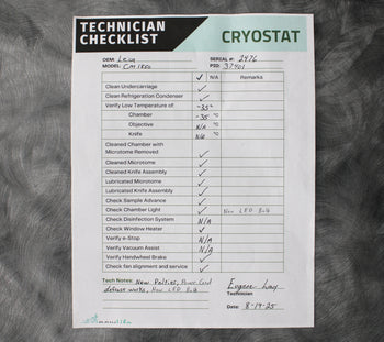 After its initial disinfection and inspection, our technicians tested the Leica CM1850-3-1 cryostat microtome with the following results:
