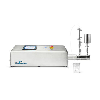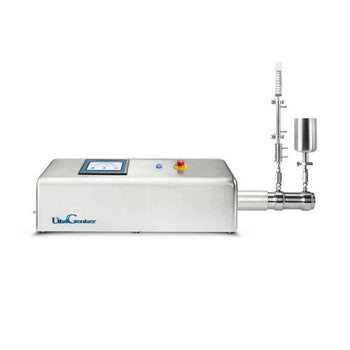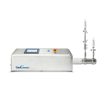 UltraGenizer is a laboratory ultra high pressure processing device. It is an electrically-driven and bench-top high shear homogenizer, which requires no compressed air or hydraulic oil to achieve maximum 4,200 bar (60,000 psi) operating pressure.