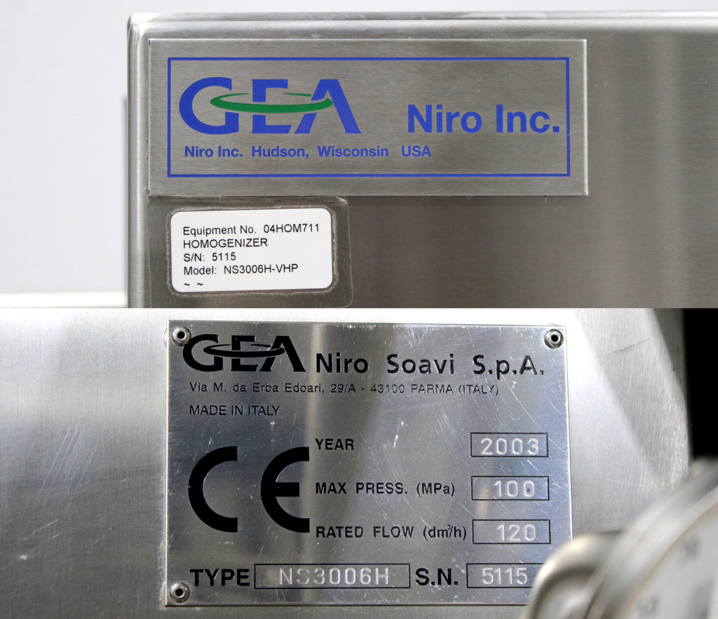 - GEA Niro Soavi NS3006H-VHP 2-Stage High-Pressure Homogenizer 32 GPH 15000 PSI 3-A