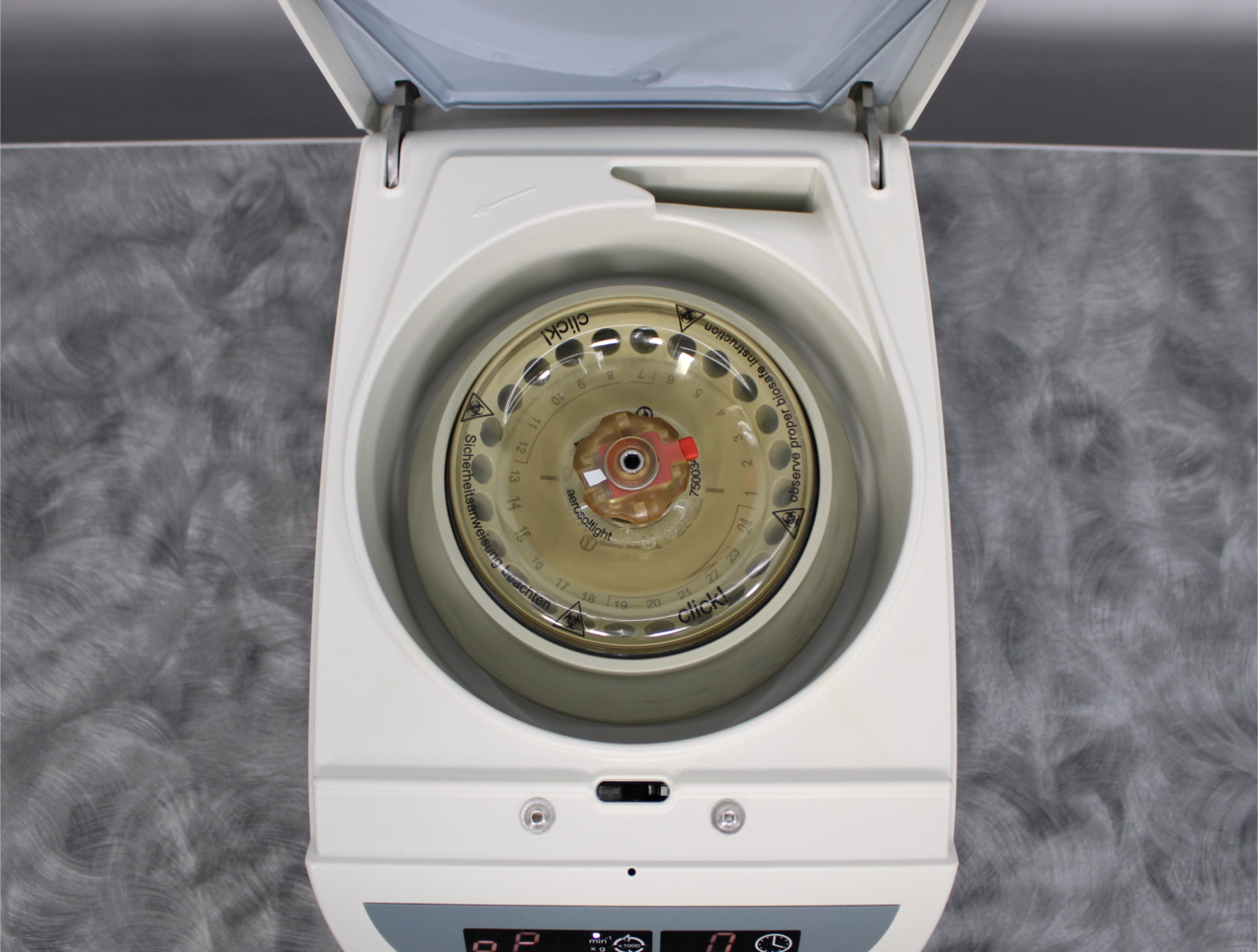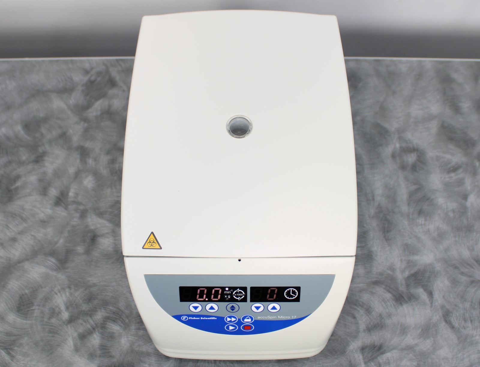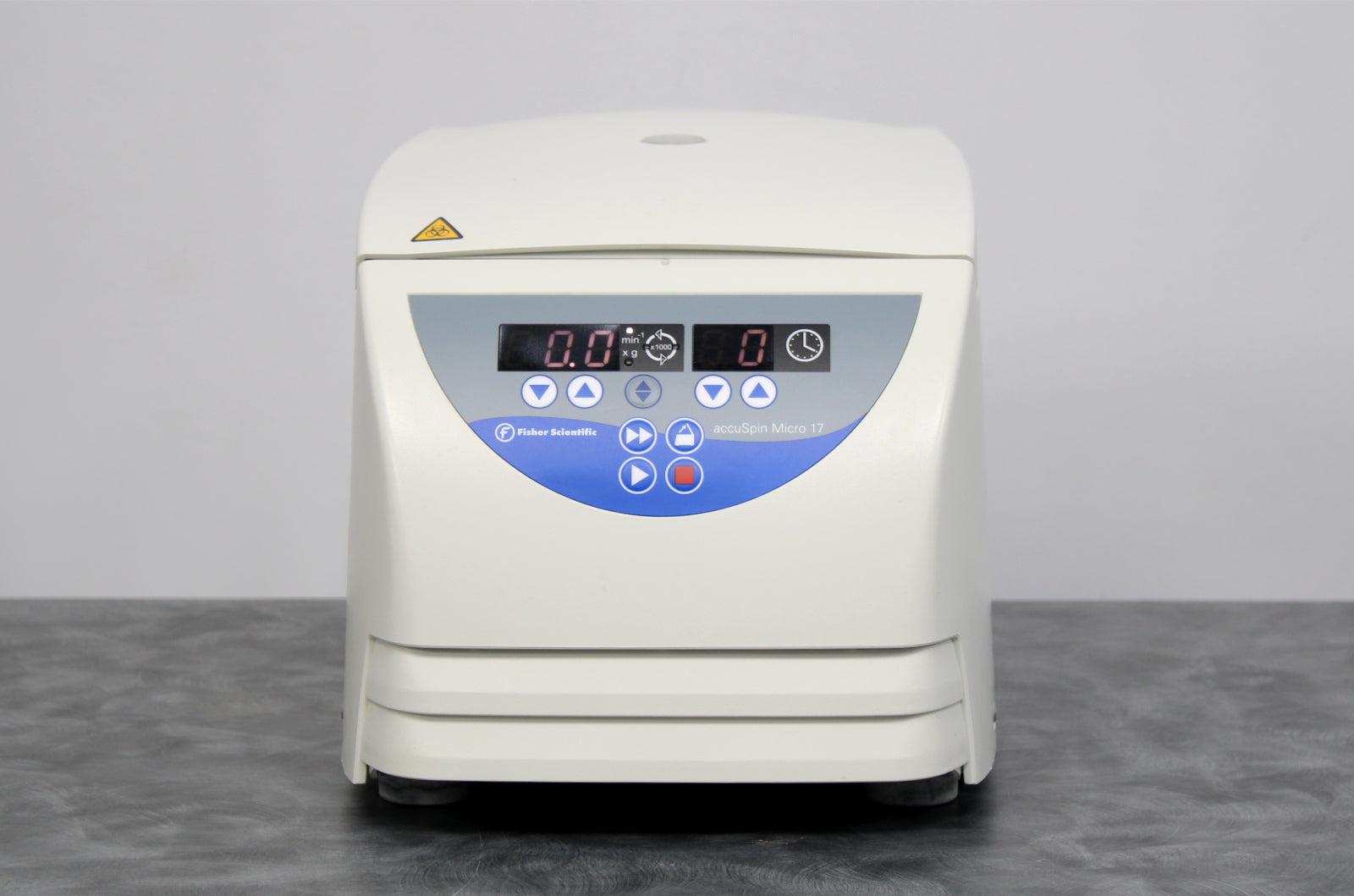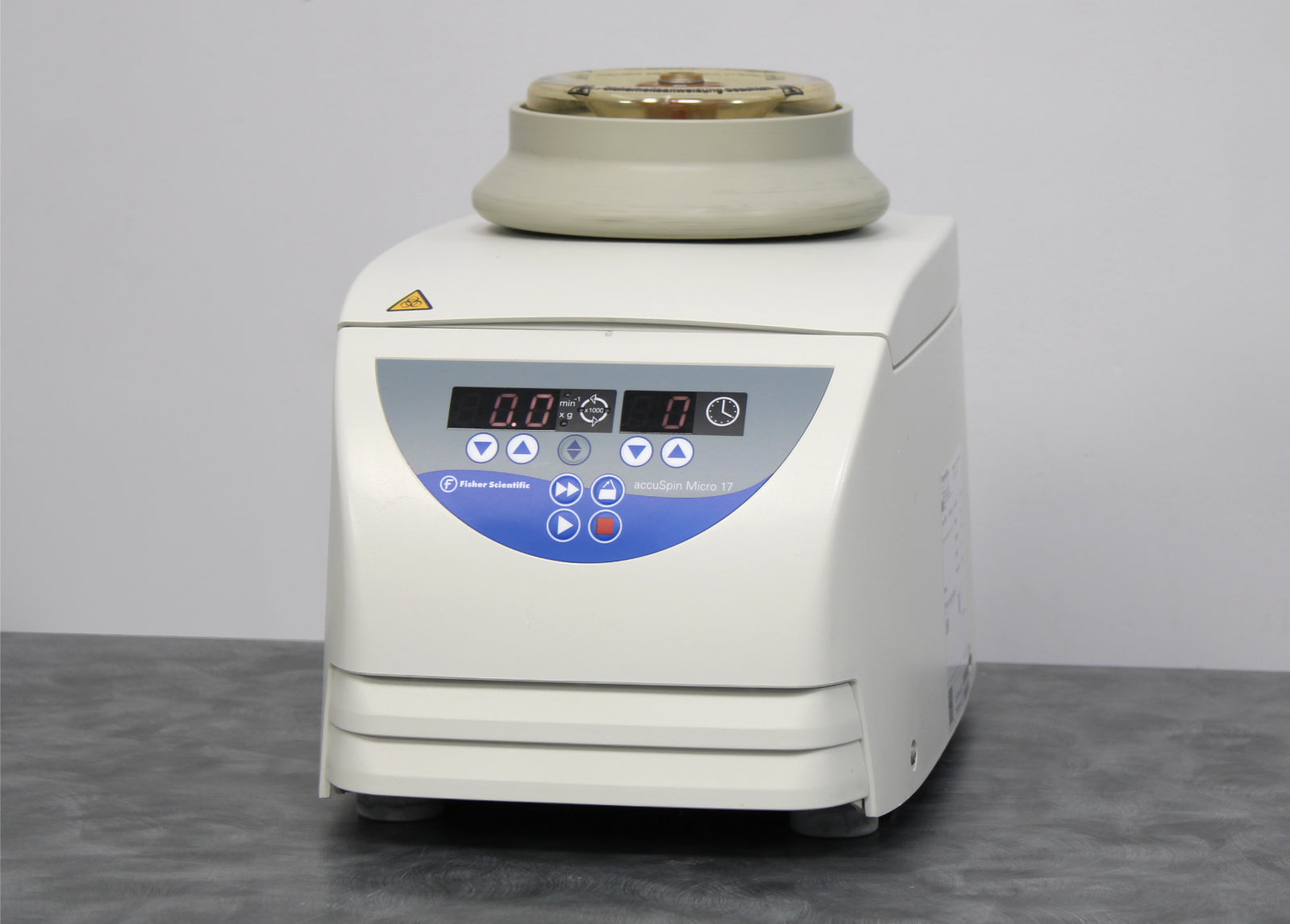 After its initial disinfection and inspection, our technicians tested the Thermo Fisher Scientific AccuSpin Micro 17 benchtop microcentrifuge with the following results: