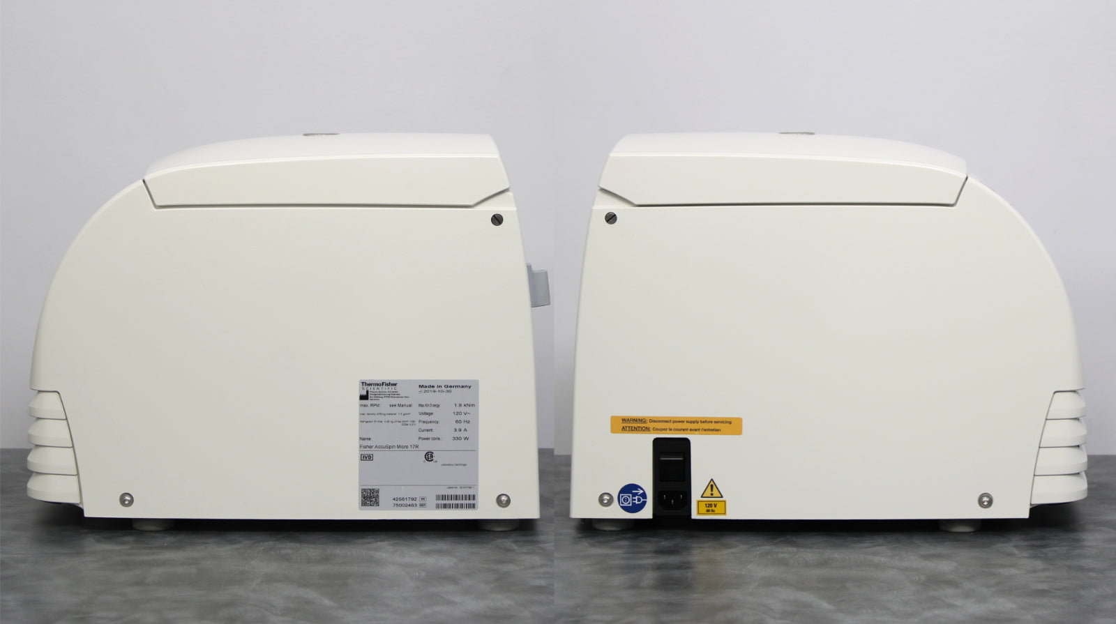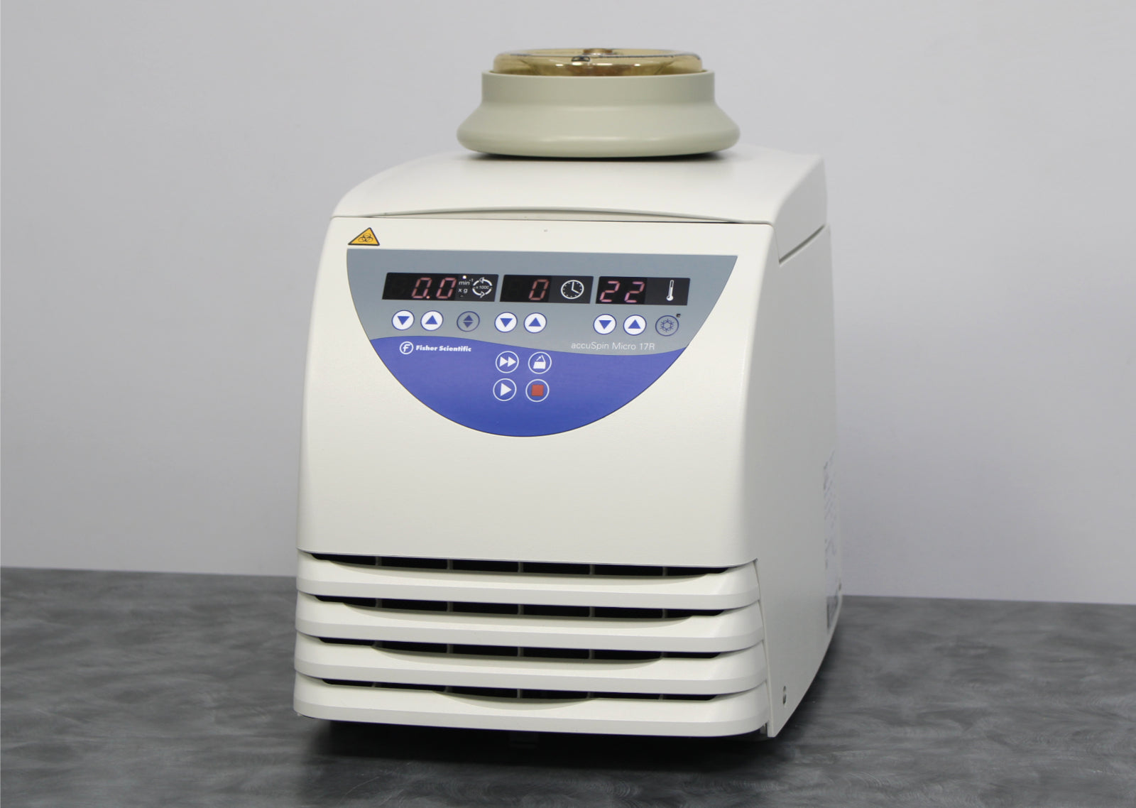 After its initial disinfection and inspection, our technicians tested the Thermo Fisher Scientific AccuSpin Micro 17R refrigerated benchtop microcentrifuge with the following results: