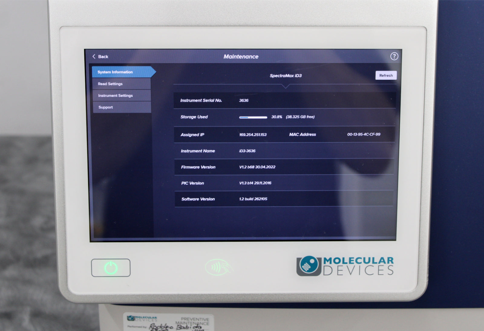 After its initial disinfection and inspection, our technicians tested the Molecular Devices SpectraMax iD3 multi-mode microplate reader with the following results: