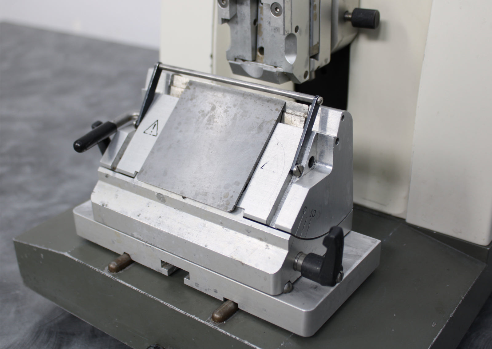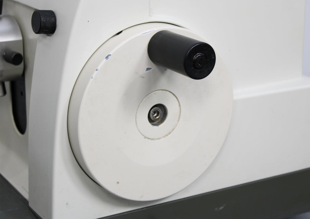 Notice: This microtome cuts well, but the auto trim set feature has been disabled and the auto-retract. The trim set feature allows the user to press a lever while turning the hand wheel to advance the specimen 30µm or 60µm.