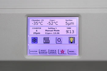 Notice: This cryostat has vacuum assist and ozone disinfection. The touchscreen responds well to a stylus or finger nail point.