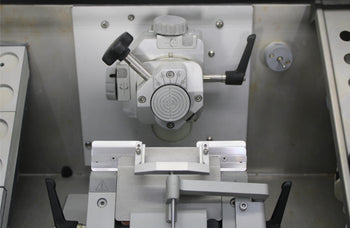 3D Precision Chuck secures the Specimen Holder to the Microtome. Dial indicators show the exact angle of the Chuck. The guide marks show the exact orientation of the Specimen Holders in the Chuck