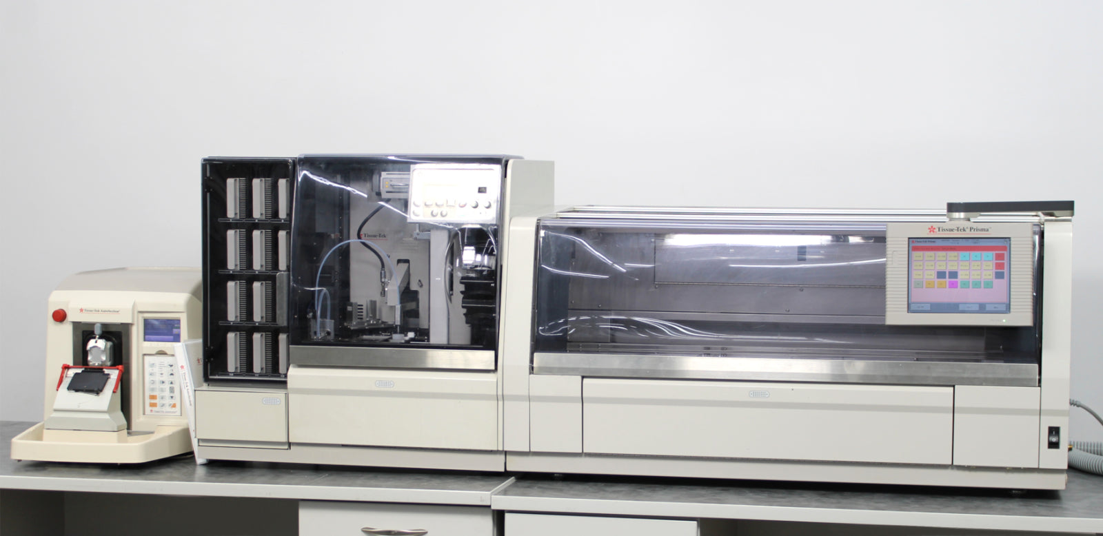 After its initial disinfection and inspection, our technicians tested the Sakura Tissue-Tek automated stainer, coverslipper, and microtome with the following results: