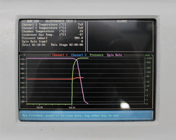 After its initial disinfection and inspection, our technicians tested the GeneVac HT-4X centrifugal vacuum evaporator with the following results: