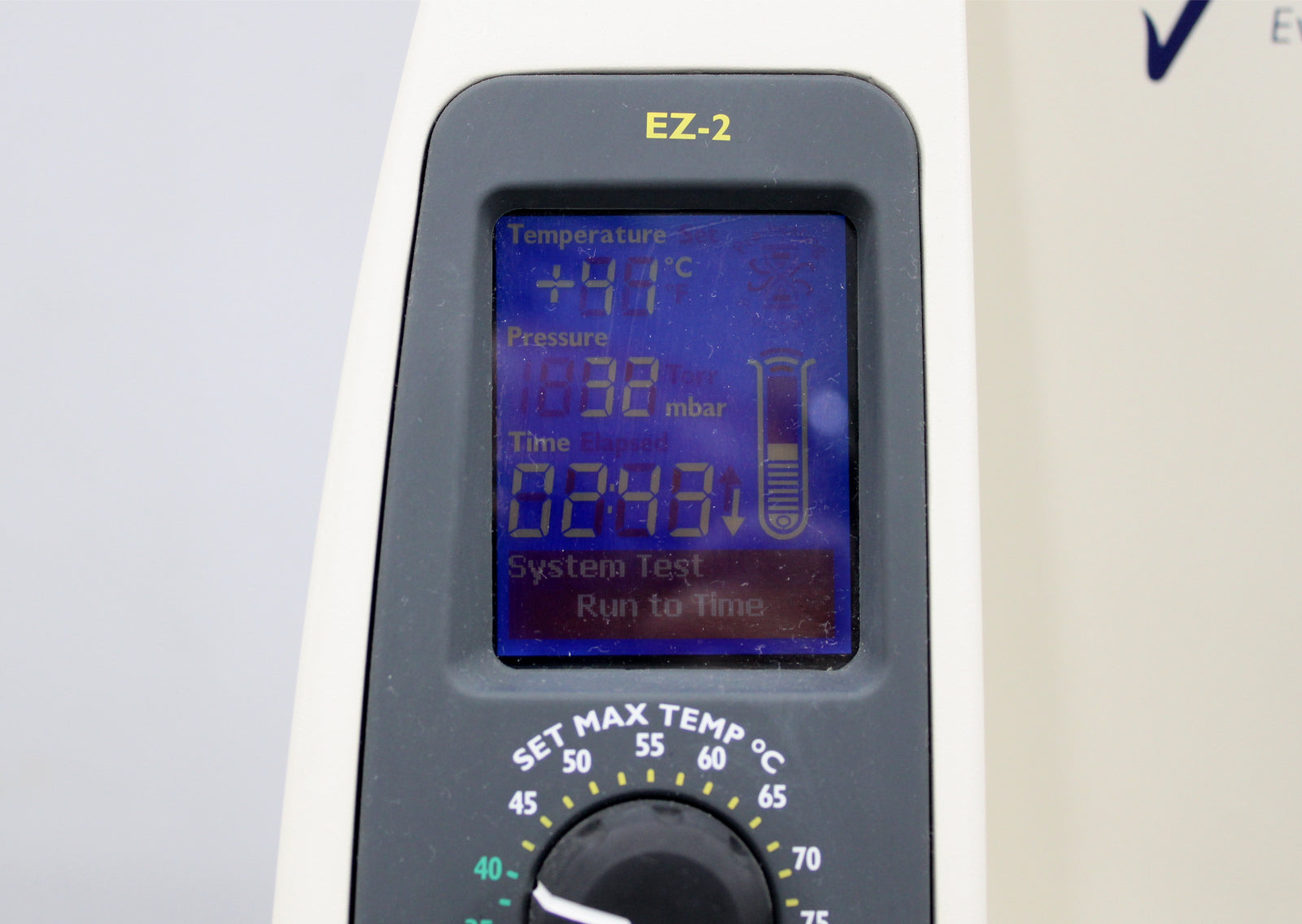 After its initial disinfection and inspection, our technicians tested the SP Scientific GeneVac EZ-2 Plus personal centrifugal evaporator with the following results: