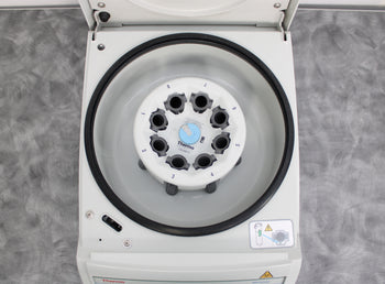 Notice: There is a crack in the plastic of the rotor chamber wall. This crack does not affect the performance of the centrifuge. Please review the available photos to see the physical condition of this centrifuge before purchasing.