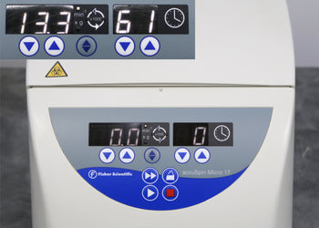 After its initial disinfection and inspection, our technicians tested the Thermo Fisher Scientific AccuSpin Micro 17 benchtop microcentrifuge with the following results: