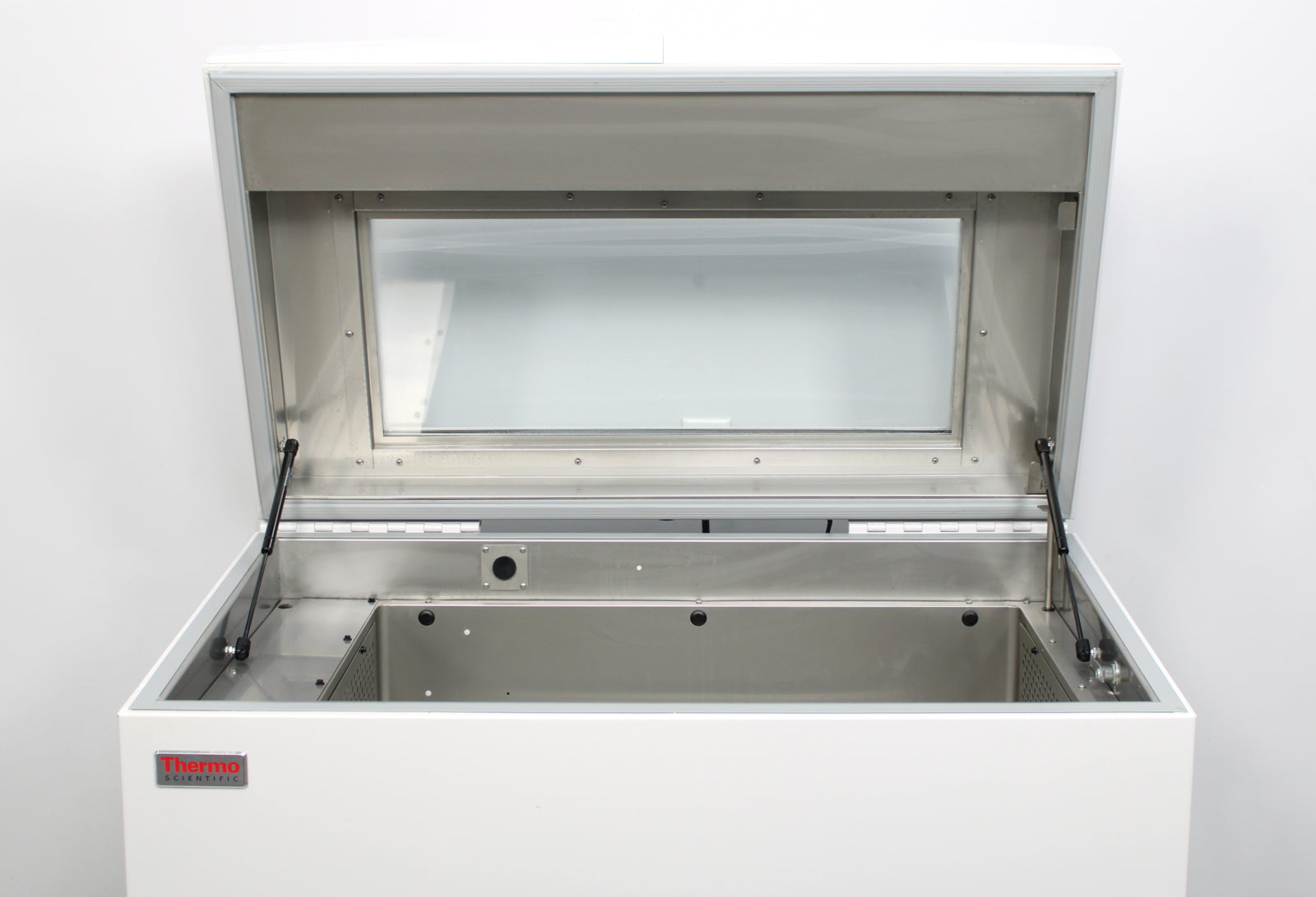 After its initial disinfection and inspection, our technicians tested the Thermo Scientific MaxQ 480R HP refrigerated console incubator shaker with the following results: