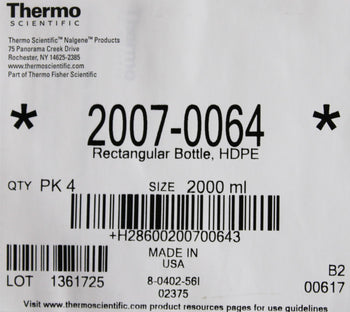 - x12 Thermo Scientific 2007-0064 Nalgene Rectangle HDPE Bottles