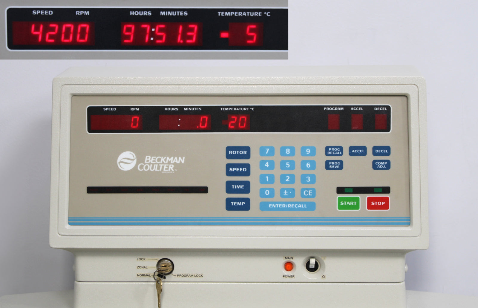 After its initial disinfection and inspection, our technicians tested the Beckman Coulter J6-MC floor centrifuge with the following results: