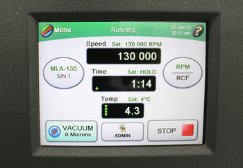 After its initial disinfection and inspection, our technicians tested the Beckman Coulter Optima MAX-XP benchtop ultracentrifuge with the following results: