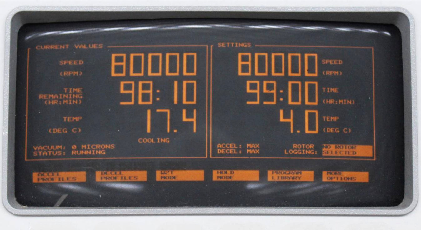 After its initial disinfection and inspection, our technicians tested the Beckman Coulter Optima XL-80K refrigerated floor ultracentrifuge with the following results: