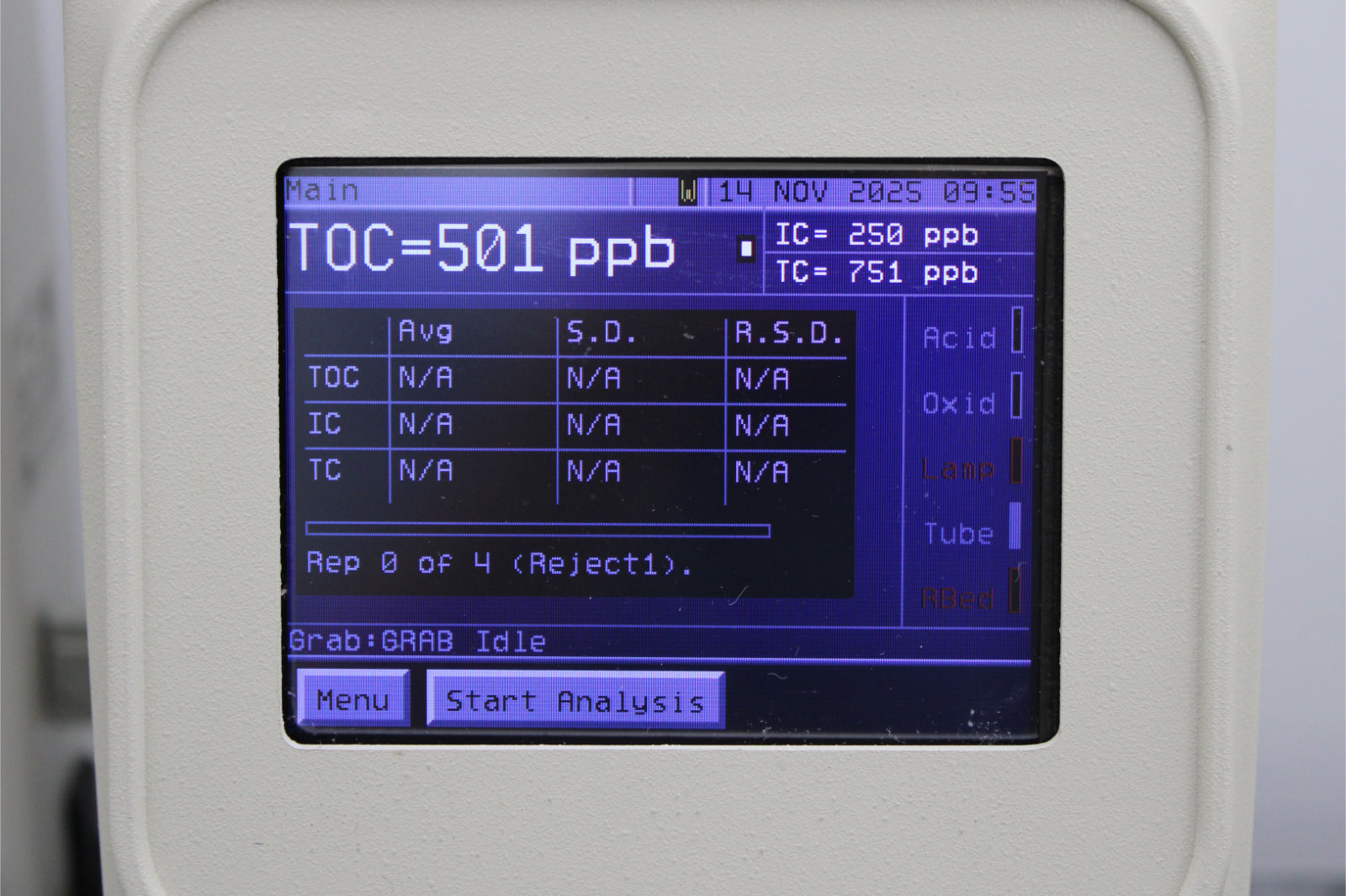 After its initial disinfection and inspection, our technicians tested the GE Analytical Sievers 900 Laboratory TOC analyzer and autosampler with the following results: