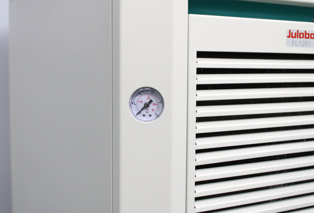 After its initial disinfection and inspection, our technicians tested the Julabo FL Series FL1201 recirculating chiller with the following results: