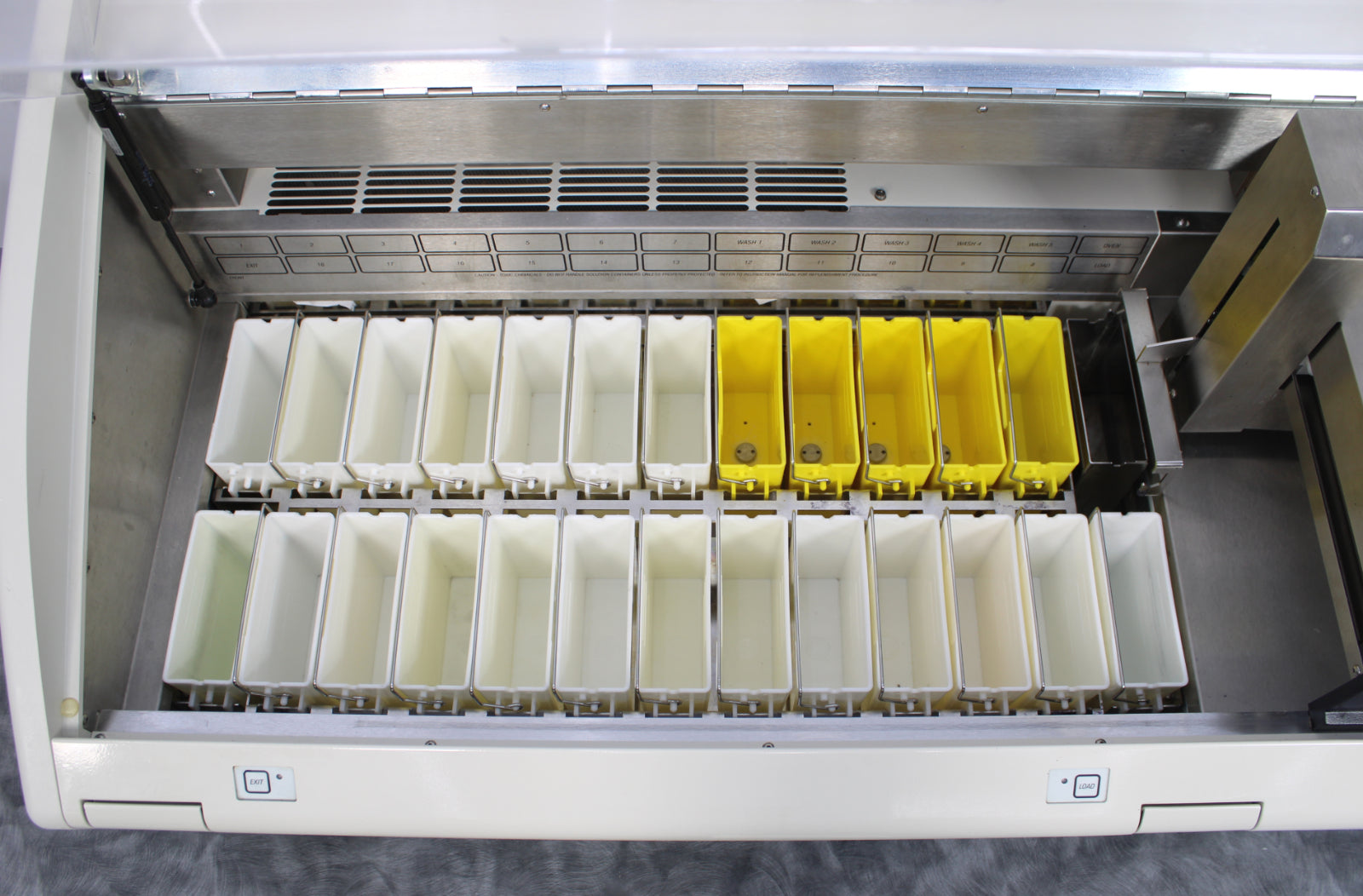 After its initial disinfection and inspection, our technicians tested the Leica AutoStainer XL benchtop automatic slide stainer with the following results: