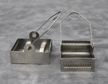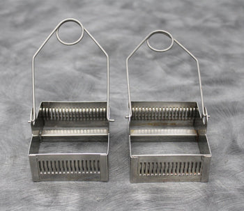 Lot of 2 20-Place Stainless Steel Laboratory Slide Staining Racks with Handle