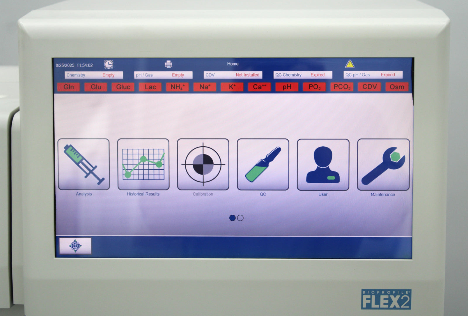 After its initial disinfection and inspection, our technicians tested the Nova Biomedical BioProfile FLEX2 cell culture analyzer with the following results:
