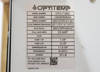- Opti Temp OTC-7.5AC 30GPM 83450 BTU/hr 7 tons Capacity Water Circulating Chiller