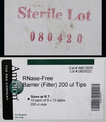 RNA Company Sterile RNase-Free Barrier Filter Tips 200µl P/N: AM12655