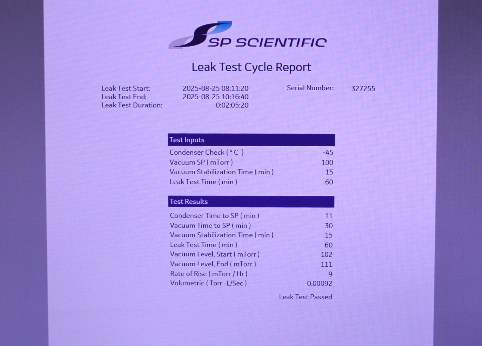 - Leak test cycle: PASSED