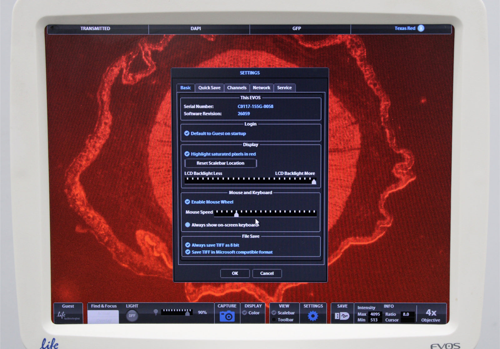 After its initial disinfection and inspection, our technicians tested the Thermo Scientific Invitrogen EVOS FL digital inverted fluorescence microscope with the following results: