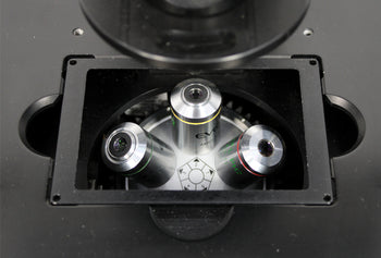 Infinity-corrected optical system; RMS-threaded objectives with 45 mm parfocal distance
