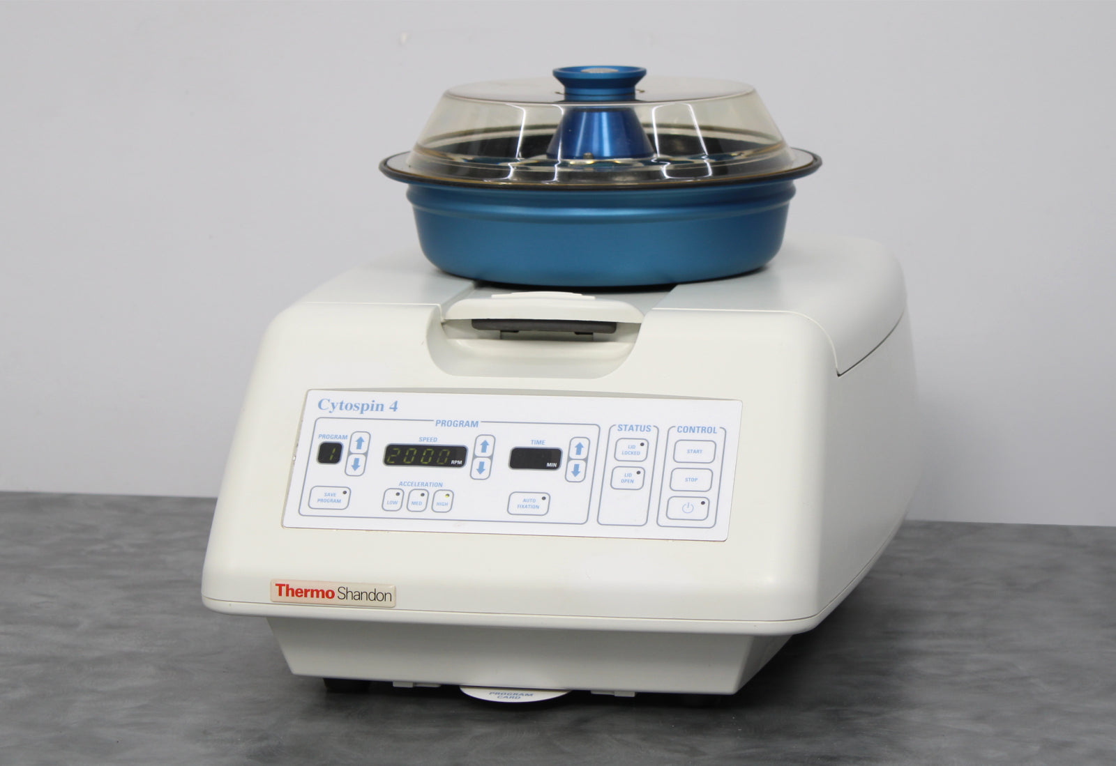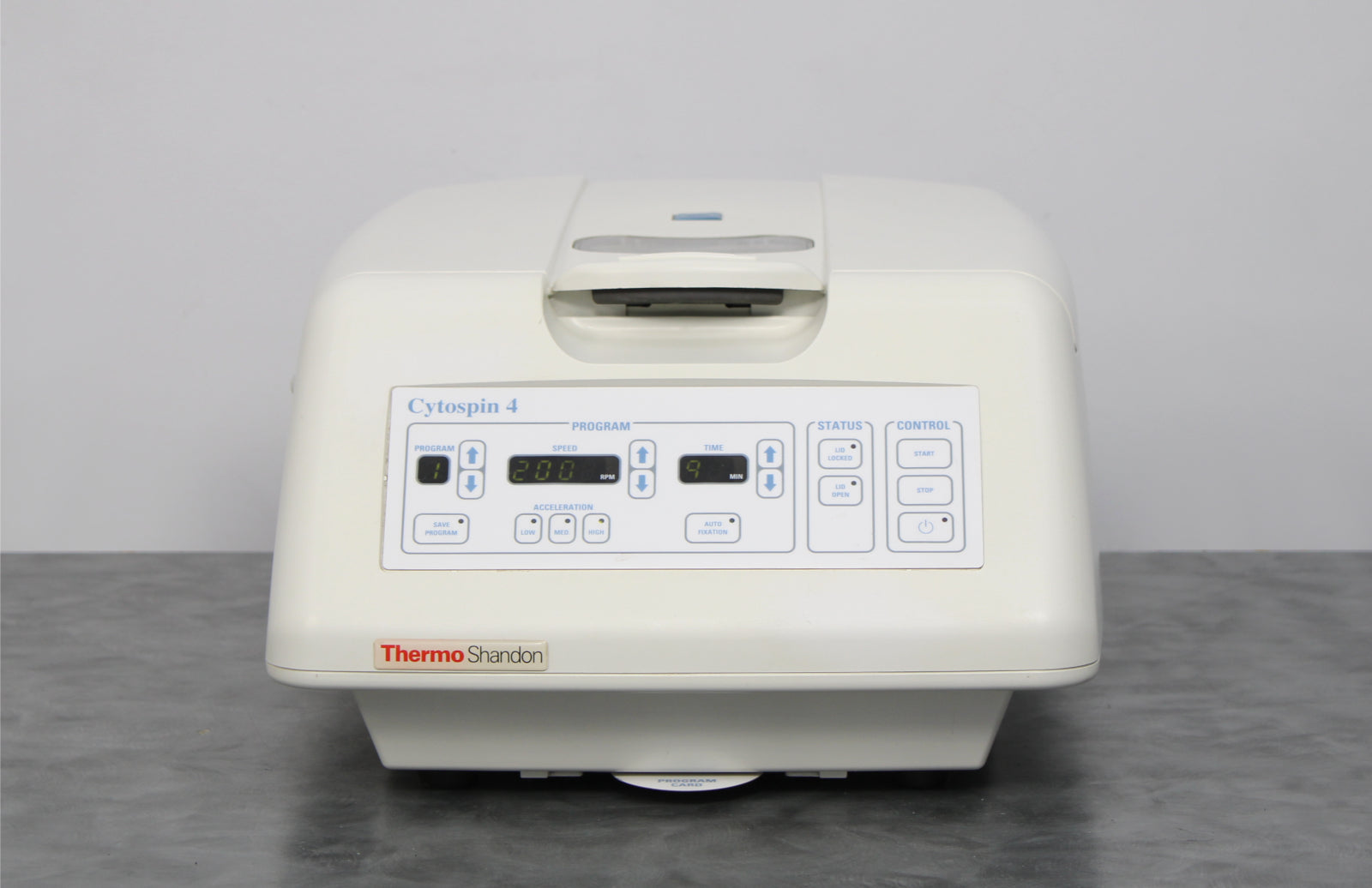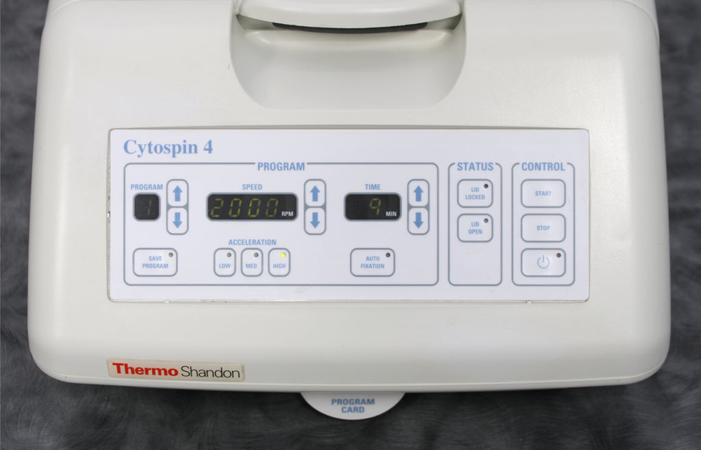 After its initial disinfection and inspection, our technicians tested the Thermo Shandon CytoSpin 4 cytocentrifuge with the following results: