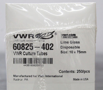 VWR 60825-402 Disposable Culture Tubes Lime Glass 10x75mm